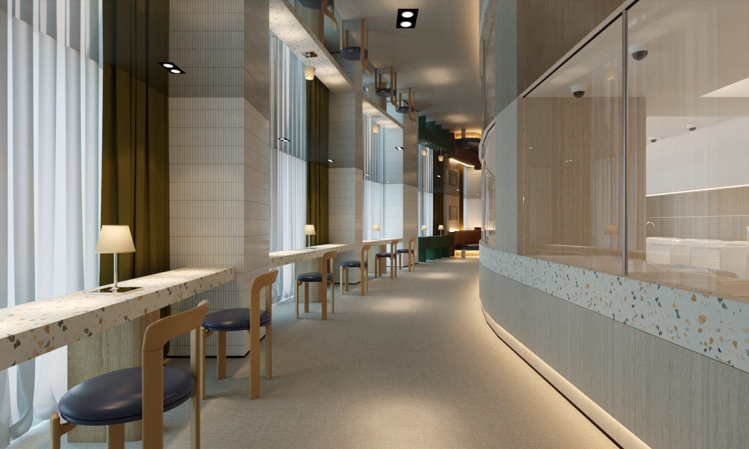 我們相信,頂級的產後修復,必須從舒適的視覺開始。本空間設計跳出傳統月子中心的冰冷與製式,以「現代設計飯店」為藍圖,大量運用溫暖的大地色系、木紋、水磨石等自然材質,搭配柔和的間接光源,營造出一個讓身體與心靈都能徹底放鬆、充滿質感與隱私的療癒場域。